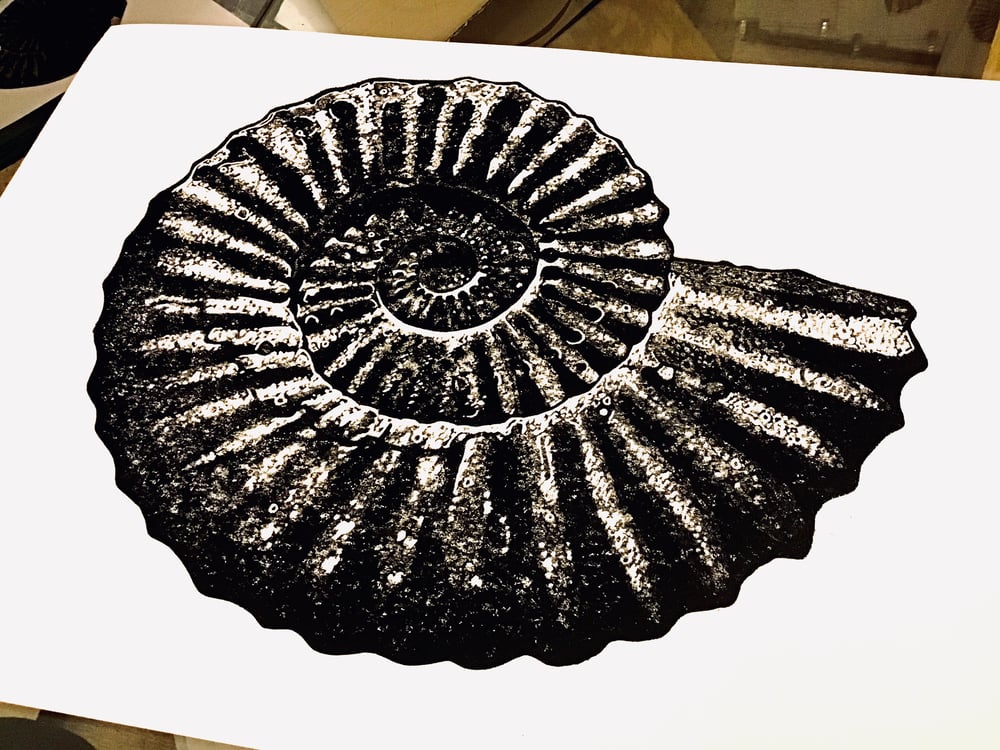 Printed on acid free paper using four shades of grey/black linseed ink.