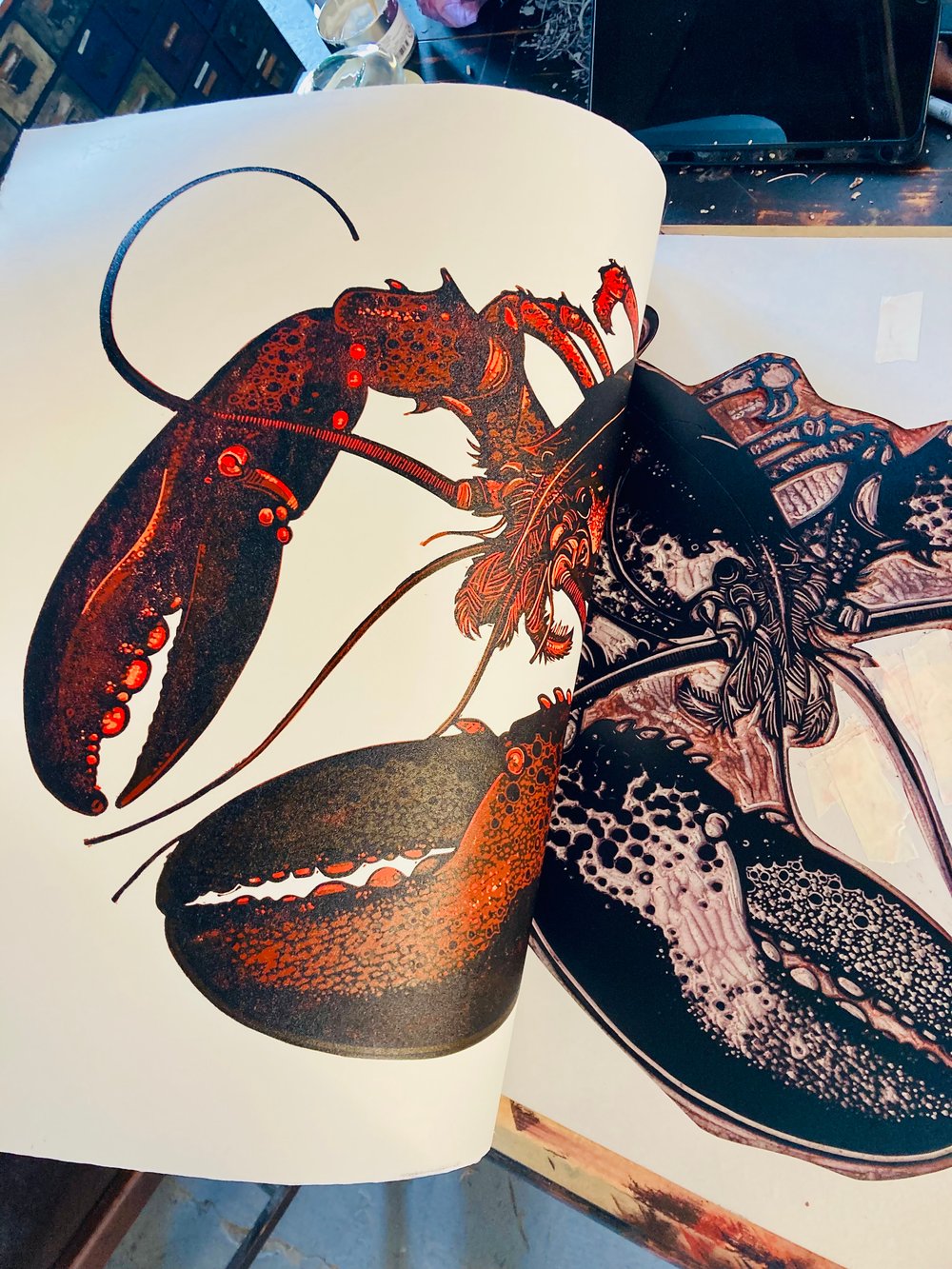 Each of these large prints is hand made and there'll be some minor variation. I cut from a single block of lino, printing the lightest colour first, then cutting into the same block for the next colour and so on until the final darkest colour. This means that a cut can never be repeated, making the small editions of prints collectable.
